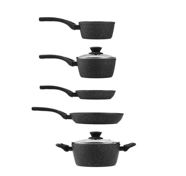 5 Piece Cookware Set Stone Blast Black