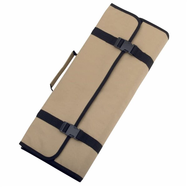 5 piece stainless steel BBQ set in a 600D polypropylene tri-fold case. Includes: knife, fork, spatula, tongs and brush. Supplied in polybag.