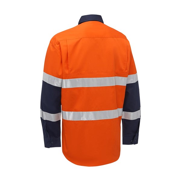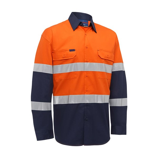 Akurra Hi Vis Long Sleeve Taped Shirt Cotton Drill 145gsm Orange/Navy Small
