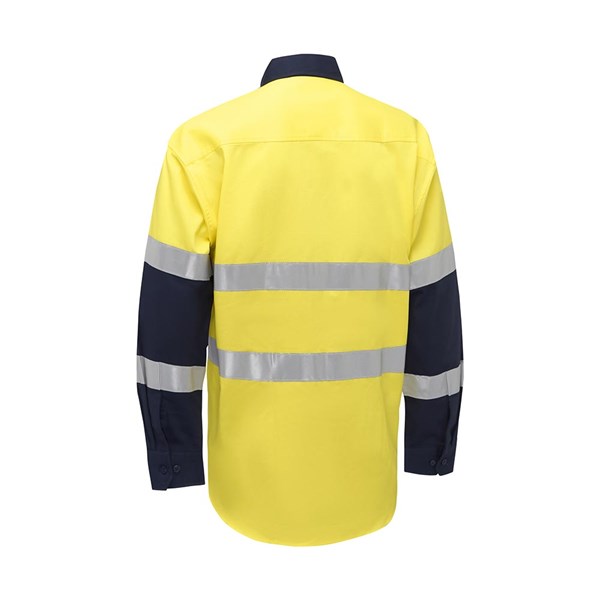 Akurra Hi Vis Long Sleeve Taped Shirt Cotton Drill 185gsm Yellow/Navy 5XL