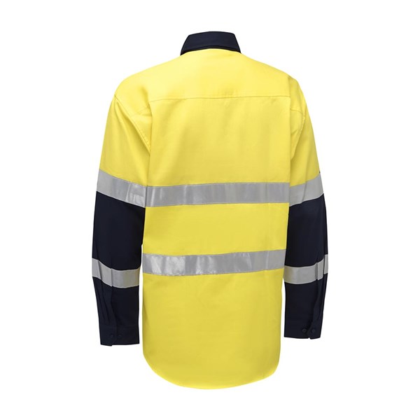 Akurra Hi-Vis Long Sleeve Closed Front Taped Shirt 185gsm Yellow/Navy