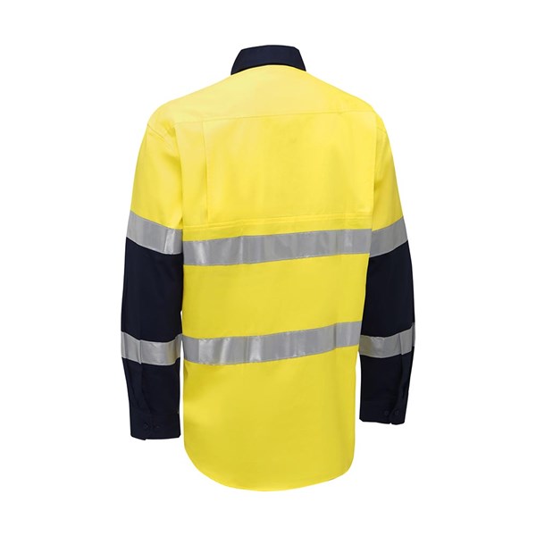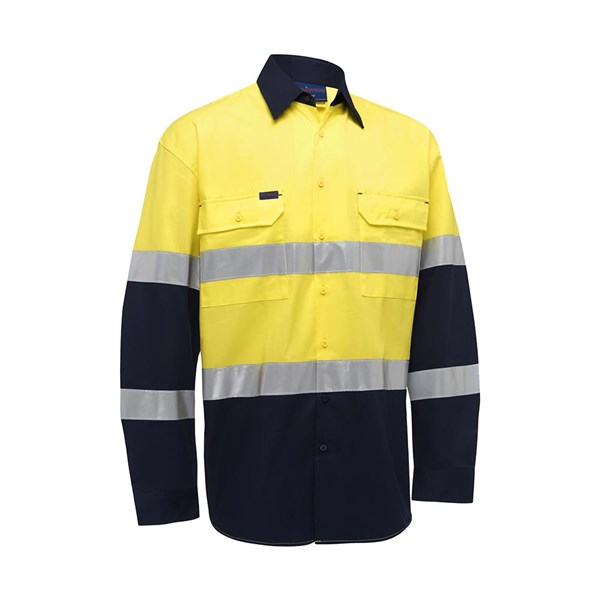 Akurra Mens Hi Vis Long Sleeve Taped Shirt Cotton Drill 145gsm Yellow/Navy 2XL