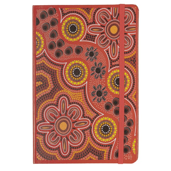 Hard cover, bound journal. Built-in elastic closure and ribbon marker. Includes 80 sheets of lined paper off-white paper.