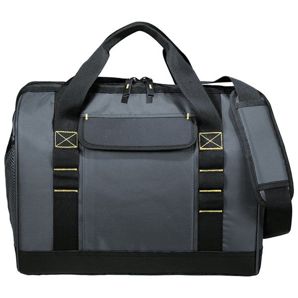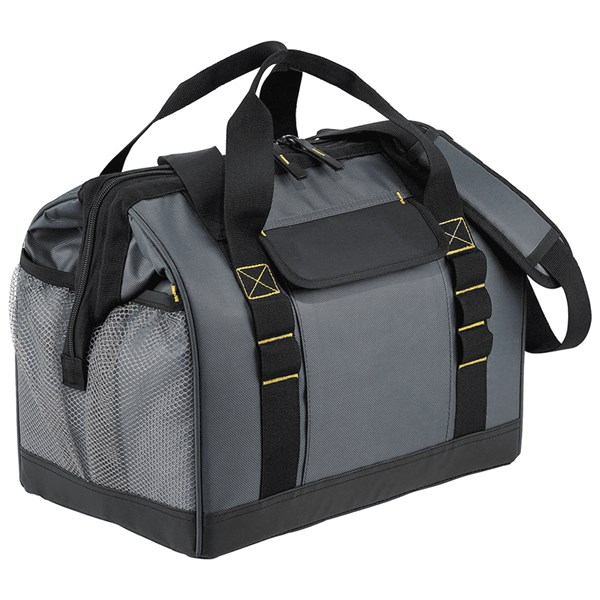 Heavy duty materials make the Workman's crib cooler ideal for the toughest job. Zippered main compartment holds up to 24 cans. Unique hard hinge opening reminiscent of a tool bag, blue/grey colour.