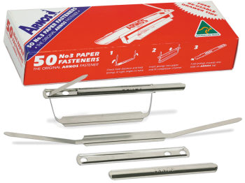 DescriptionThe original famous 3 - piece long prong paper fastener with full length secure top slide. 50mm capacity for 2 hole punched documents at 7cm or 8cm.