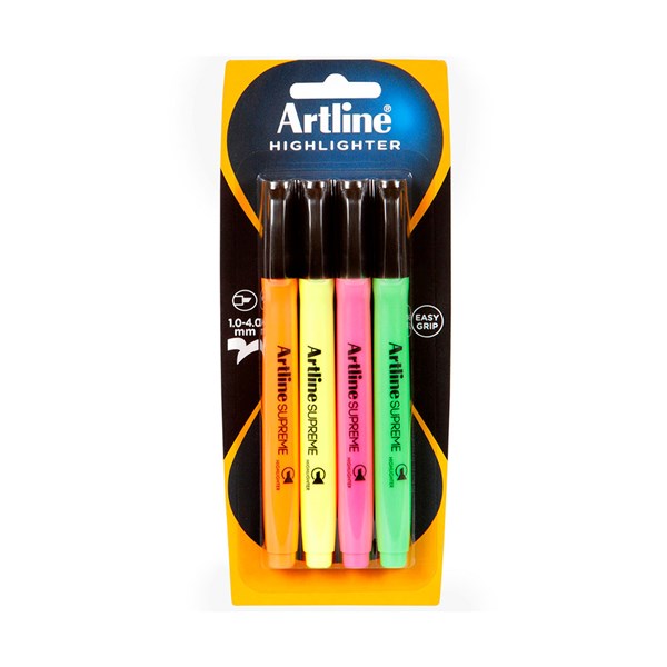 Artline Supreme Highlighter Chisel Assorted Pack 4