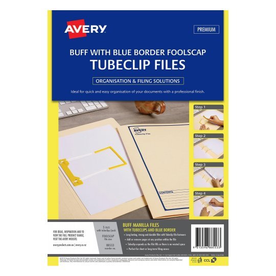 Avery 88553 Tubeclip Foolscap File Buff Blue Pack5