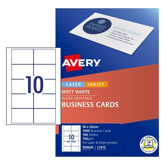 • Customise your Business Cards with our free and easy-to-use template software; Avery Design and Print - available at averyproducts.com.au/print