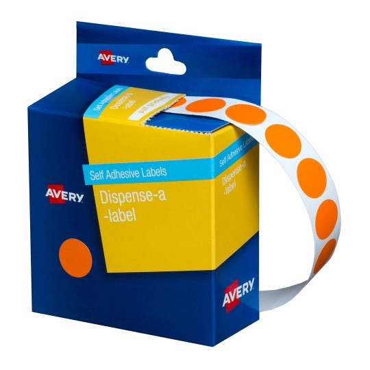 Avery Circle Dispenser Labels Removable 14mm Diameter Pk 1050 Orange