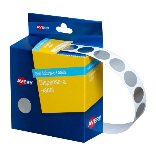Avery Circle Dispenser Labels Removable 14mm Diameter Pk 1050 Silver