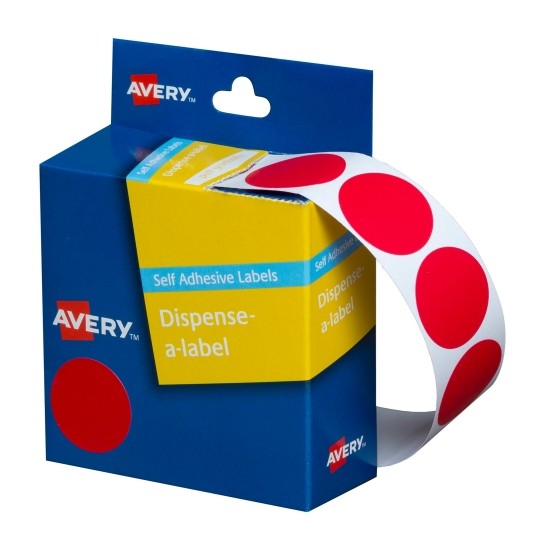 Avery Circle Dispenser Labels Removable 24mm Diameter Pk 500 Red