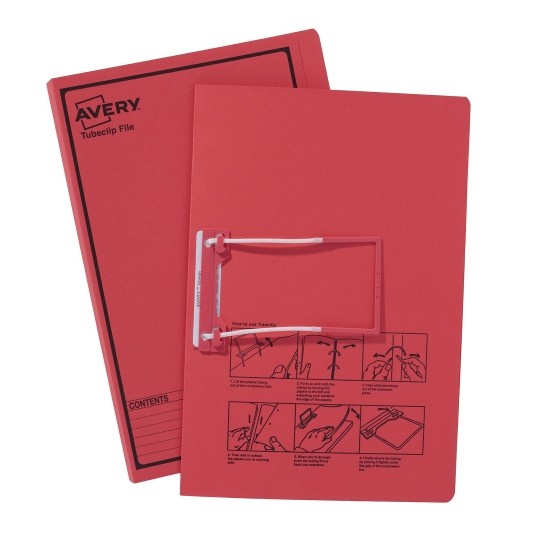 Avery Tubeclip File Foolscap 355x241mm Red With Black Print Pack 20