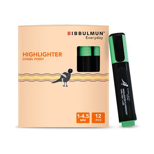 Bibbulmun Highlighter Fluorescent Chisel Point Box 12 Green