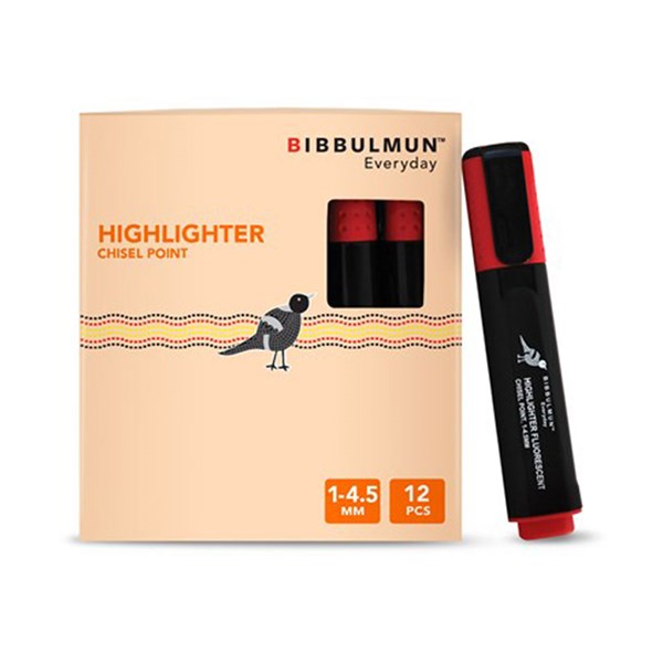 Bibbulmun Highlighter Fluorescent Chisel Point Box 12 Red