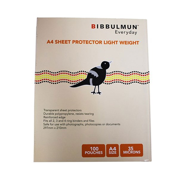 Bibbulmun Sheet Protectors A4 35 Microns Clear Box 100