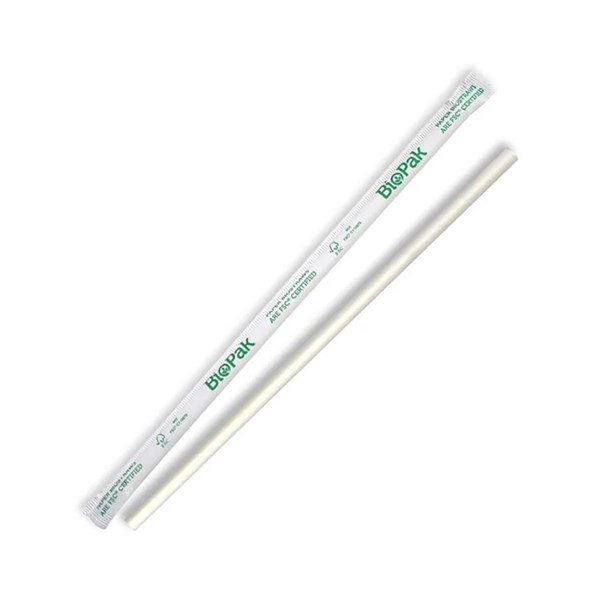 Biopak Biostraws White 6mm Individually Wrapped (Box 2500)