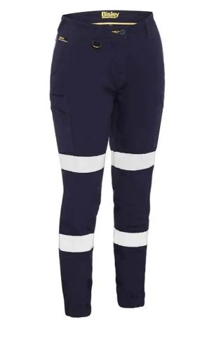 Bisley Pants Womens Cargo Navy Stretch Cotton Drill 280gsm Cuffed BPL6028T