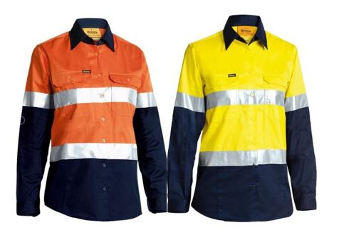 Bisley Shirt Womens L/S Cotton Drill 155gsm 3M Tape Hi Vis BL6696T