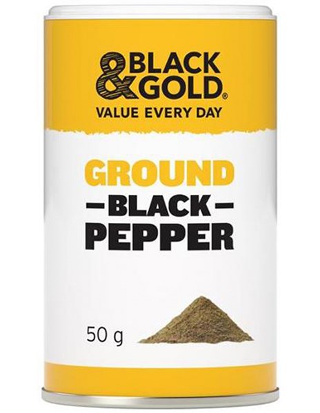 • Black & Gold Ground black pepper available in a simple and storage friendly container with sprinkle and pour options.