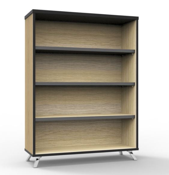 Bookcase Natural Oak Black Trim 1200mm H x 900mm W x 315mm D