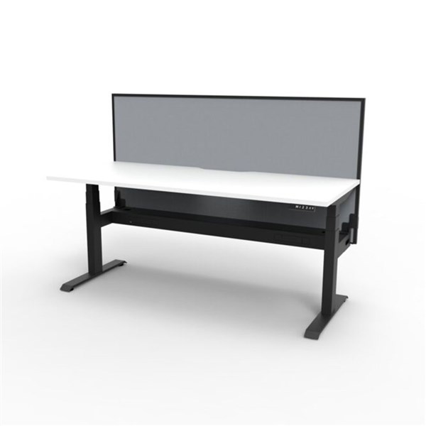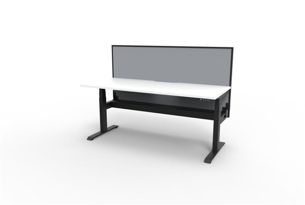 Boost + 1P Sit Stand Desk 1800x750mm Nat White Top Black Frame Grey Screen Cable Tray