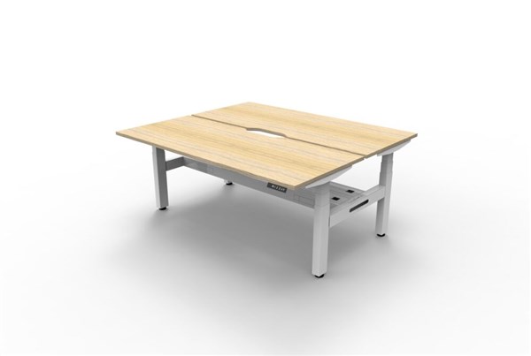 Boost + 2P Sit Stand Desk 1800x750mm Nat Oak Top White Frame Cable Tray