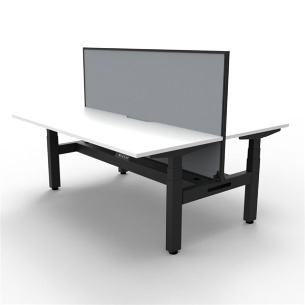 Boost + 2P Sit Stand Desk 1800x750mm Nat White Top Black Frame Grey Screen Cable Tray