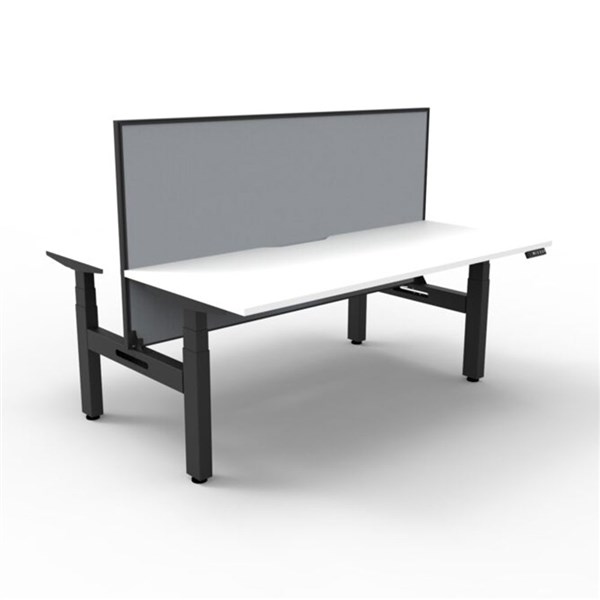 Boost + 2P Sit Stand Desk 1800x750mm Nat White Top Black Frame Grey Screen