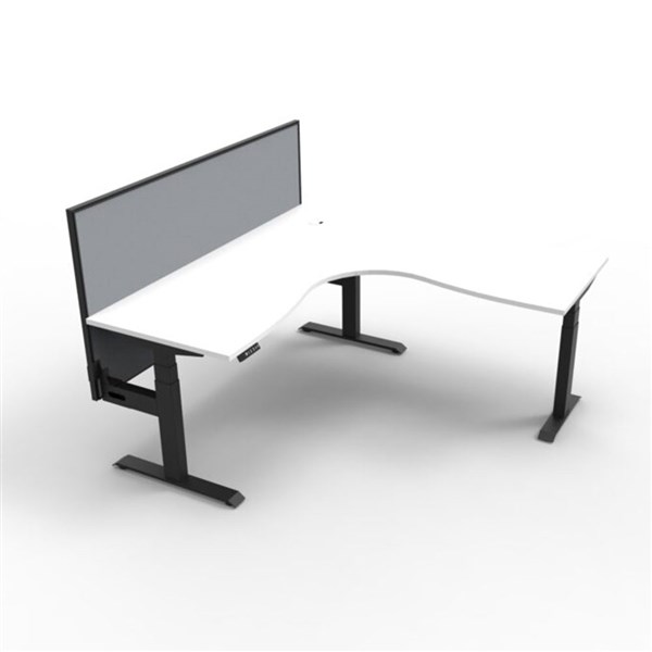 Boost + Cnr Sit Stand Desk 1800x1500mm Nat White Top Black Frame Grey Screen