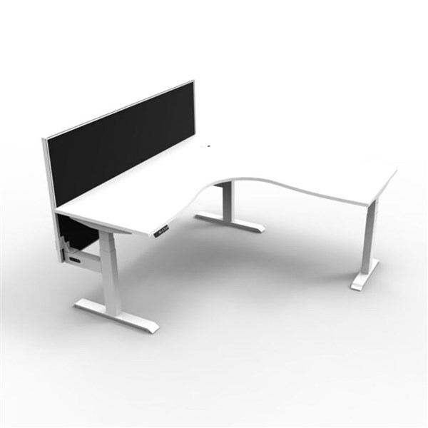 Boost + Cnr Sit Stand Desk 1800x1500mm Nat White Top White Frame Black Screen