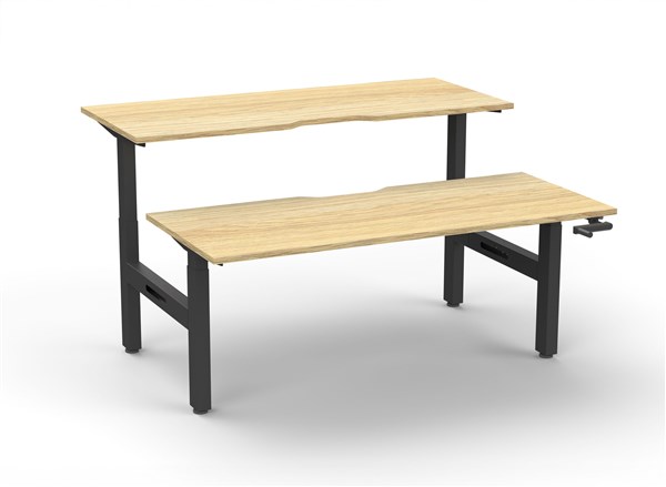 Boost Crank Manual Height Adjustable Back To Back Workstation With Screen - Natural White/ White Satin
