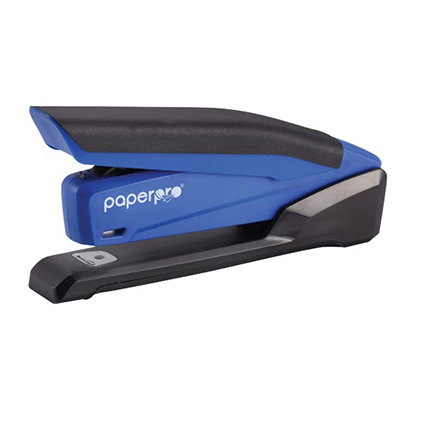 DescriptionPaperPro staplers take stapling to an all new level. Thanks to a patented spring - power mechanism design, PaperPro staplers can staple from 2 - 100 sheet with minimal pressure. This is a low-cost, compact, spring powered stapler which can staple up to 20 sheets of paper with one finger ease. It is