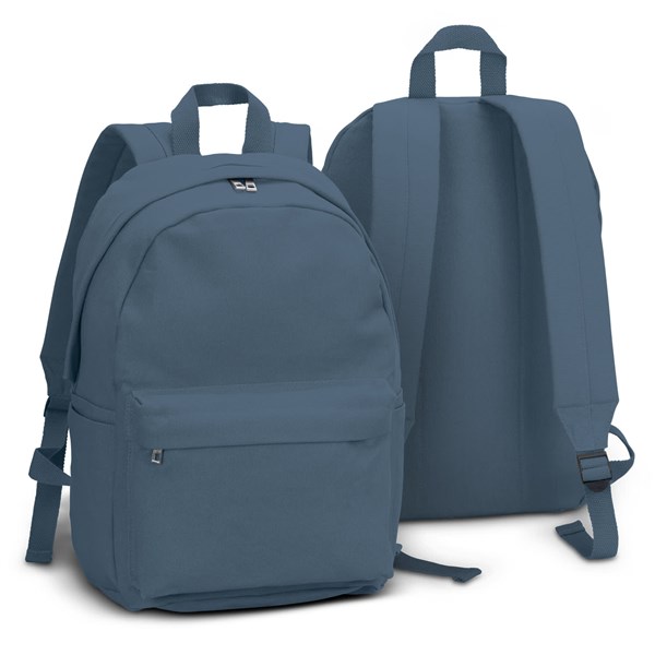 Affordable backpack which is manufactured from 450gsm heavy cotton canvas. It has a zippered main closure and adjustable woven shoulder straps with padding. Other features include an internal slip pocket for a laptop, a large zippered front pocket, a woven carry handle and two side pockets which double as a drink bottle holder.