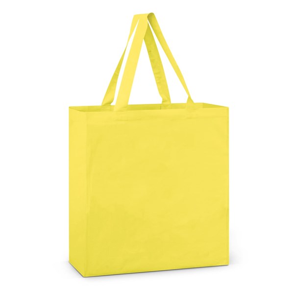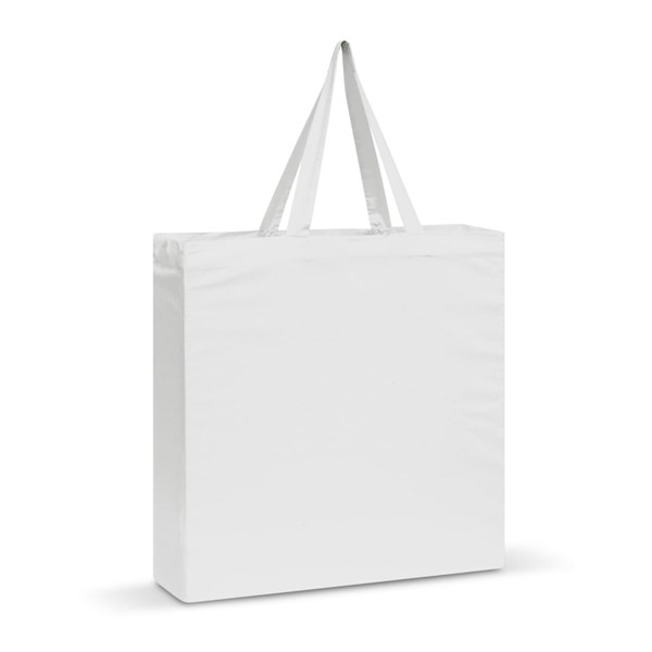 Reusable tote bag with a gusset which is manufactured from 130gsm cotton.