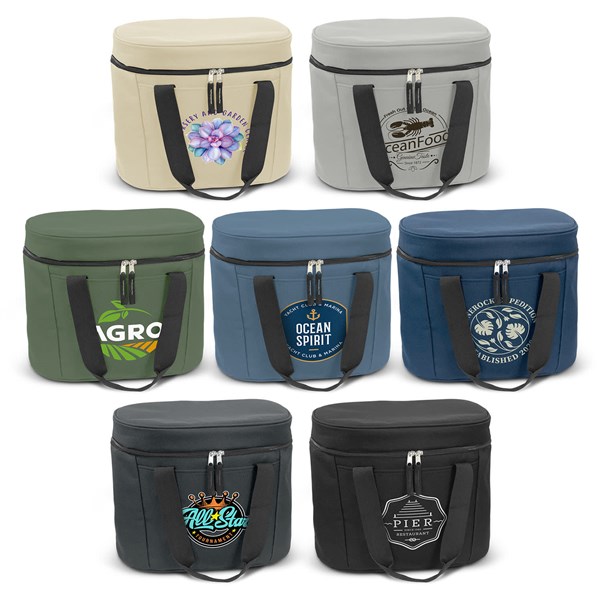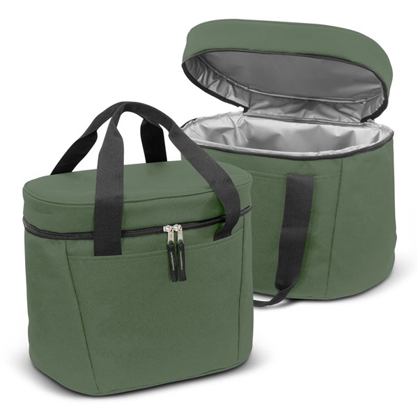 Large 20L cooler bag which is manufactured from robust 600D polyester with PE foam insulation encased in a water-resistant PEVA inner liner. It has a zippered top closure with large zipper pulls, woven carry handles and a front slip pocket.
