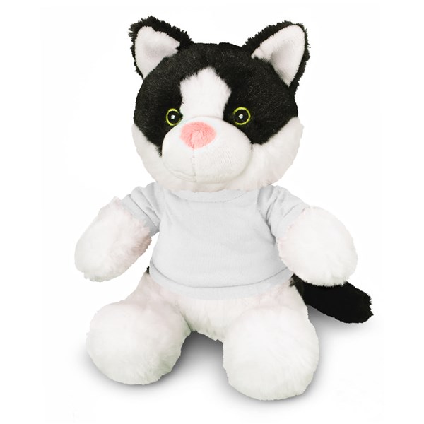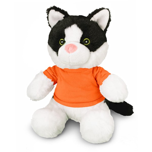 Soft cat plush toy with embroidered eyes and a polyester t-shirt which is available in eleven colours. Plush animals provide a cute and cuddly branding option and are great for brand recognition and spreading goodwill. They have also been manufactured to meet with AS/NZS Safety Toy Standards.