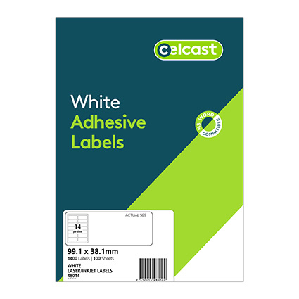 Celcast Labels Laser DL14 99.1X38.1mm 14Up White Box 100