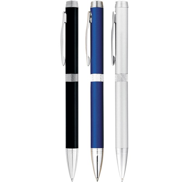 Metal pen with twist action mechanism. Available in 3 colours.