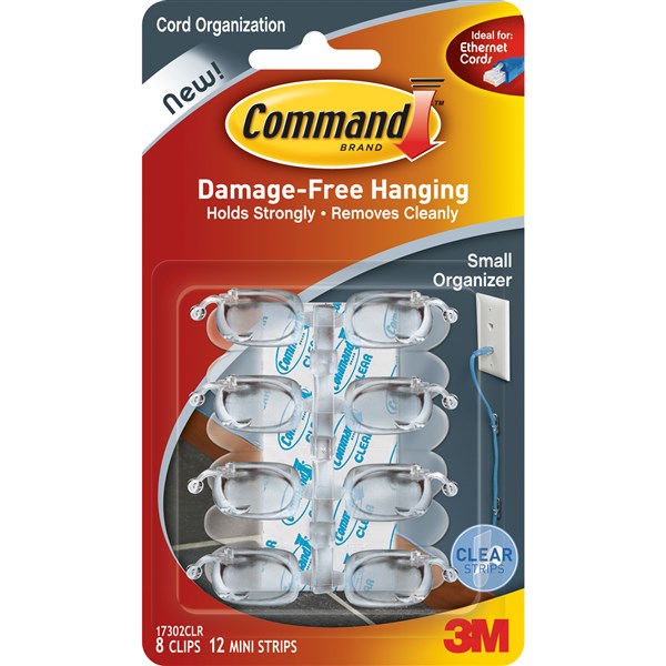 • Command™ Clear Small Cord Organisers holds 5mm cords