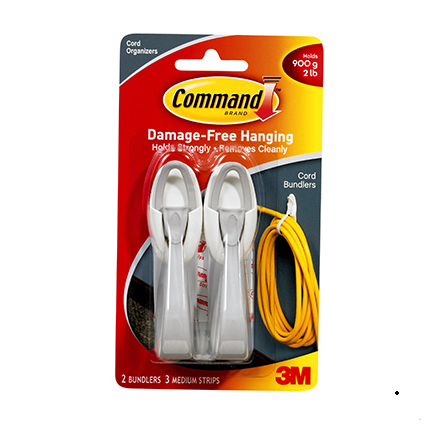 DescriptionCommand Cord Bundlers hold up to 900g and are designed for bundling all types of cords e.g. extension cords, and ropes, where they keep cords organized and safely out of the way. Contains 2 Bundlers 3 Medium Strips.