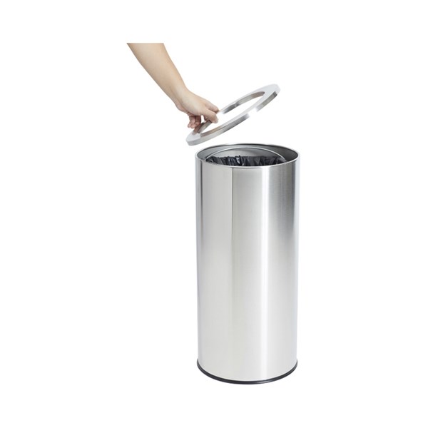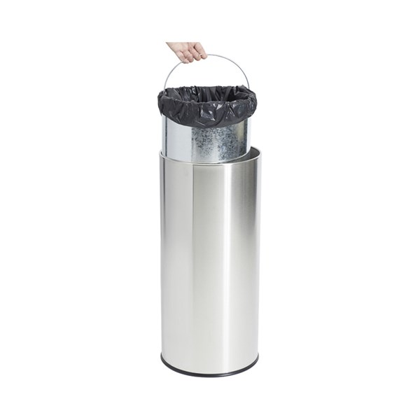 Ideal for public areas, this lobby bin has a rubber ring on the base. Top opening. Polished finish. Galvanised liner. These high quality stainless steel waste bins are durable, practical in size, with a sleek finish. Ideal for use indoors and outdoors.