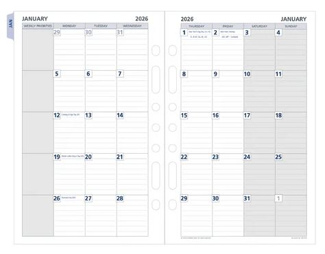 DescriptionDayPlanner desk edition monthly dated tab refill for one year fits 7 - Ring holders. The page size 216x140mm.