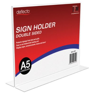 • The Deflecto Double-Sided A5 Landscape Sign Holder allows you to display signs, menus, announcements, promotions and more.