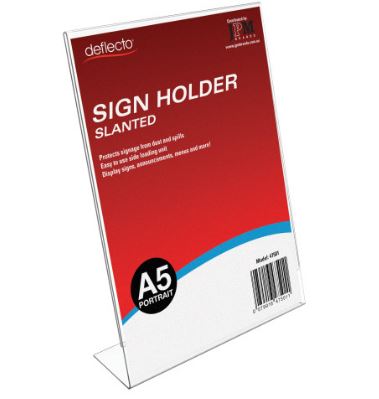 • The Deflecto Slanted A5 Portrait Sign Holder is the perfect way to professionally present and display your A5 marketing or communication signage.