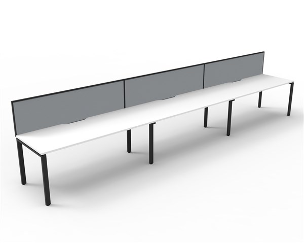 The 60x30 profile leg creates a modern, minimalist feel throughout the office, while the 750mm deep Enviroboard top with scallop for cable access and recessed leg allows for a spacious workspace with long runs of workstations.