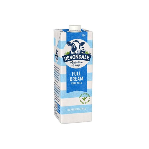 DescriptionWith only 3% fat, there's no excuse not to enjoy our Devondale Full Cream Milk. It's a terrific choice for health - conscious folk. We heat - treat the milk as it arrives from the dairy farm, to ensure that you get the best possible product with the most convenience for your family. Full cream milk
