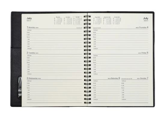 • Printed on subtle cream paper, each dated page layout features a six-month to opening calendar, week numbers and Julian days, as well as both national and international public holidays.