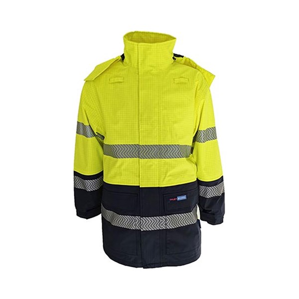 DNC Workwear Hi-Vis FR HRC Taped Rain Jacket 280gsm 3467 Yellow/Navy XS