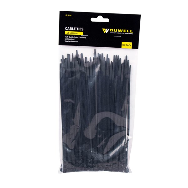 Duwell Cable Tie UV Resistant Black 200 x 4.8mm Pk 100