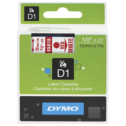 Dymo Labelling Tape D1 12mm X 7M 45015 Red On White